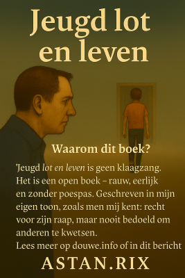 Steeds meer mensen sturen mij mails, privéberichten en appjes met de vraag waarom ik dit boek schrijf en waar het om gaat. Jeug Lot en Leven is mijn levensverhaal, maar niet als klaagzang of narcistisch document. Het is een open boek — recht voor zijn raap, zonder poespas of slingers om het mooier te maken. Geschreven in mijn eigen toon, zoals men mij kent: eerlijk, rauw en zonder blad voor de mond, maar nooit bedoeld om anderen te kwetsen.